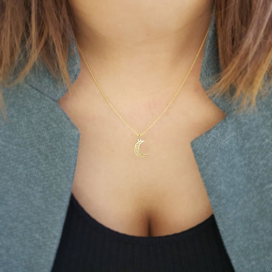 Ketting Maan Opengewerkt | 24K goldplated 925 zilver
