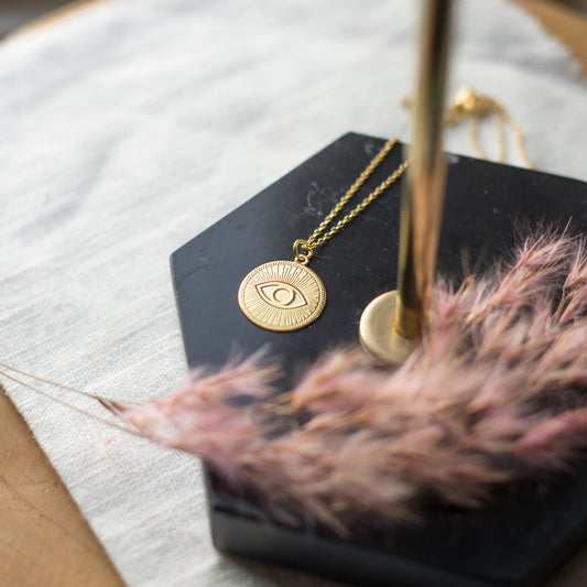 Ketting Alziend Oog Munt | 24K goldplated 925 zilver