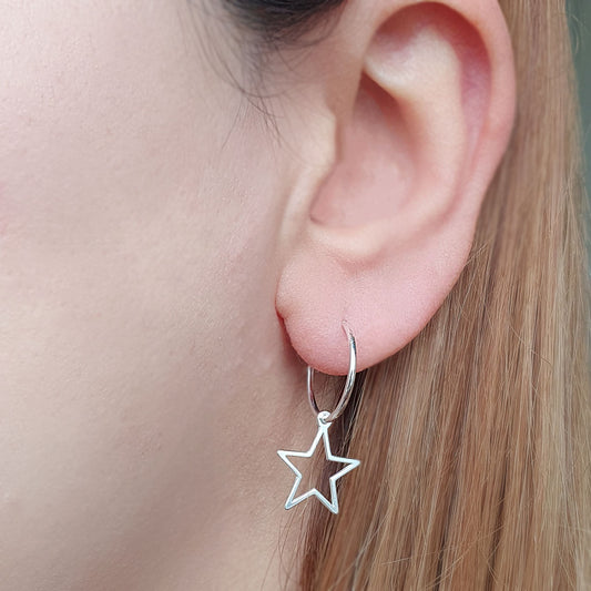 Oorringen hexagon | Oorbellen 925 zilver | 14 mm
