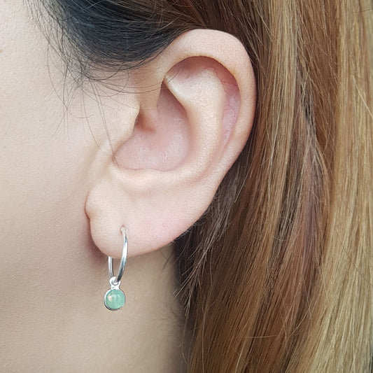 Gem Hoops | Oorringen 925 zilver met aqua chalcedoon edelsteen | 14 mm