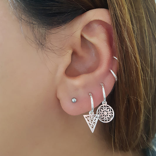Rosette | Oorringen 925 zilver | 14 mm