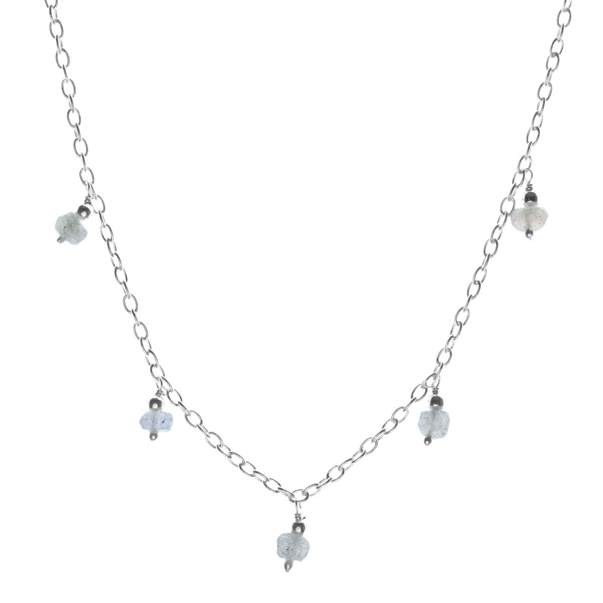 Deze prachtige ketting met labradorietkraaltjes is een schitterende toevoeging aan veel outfits. De kraaltjes zijn facet geslepen voor extra glans en de ketting is gemaakt van 925 sterling zilver. Labradoriet is een edelsteen die bekend staat om zijn prachtige kleuren, die kunnen variëren van blauw tot groen.
