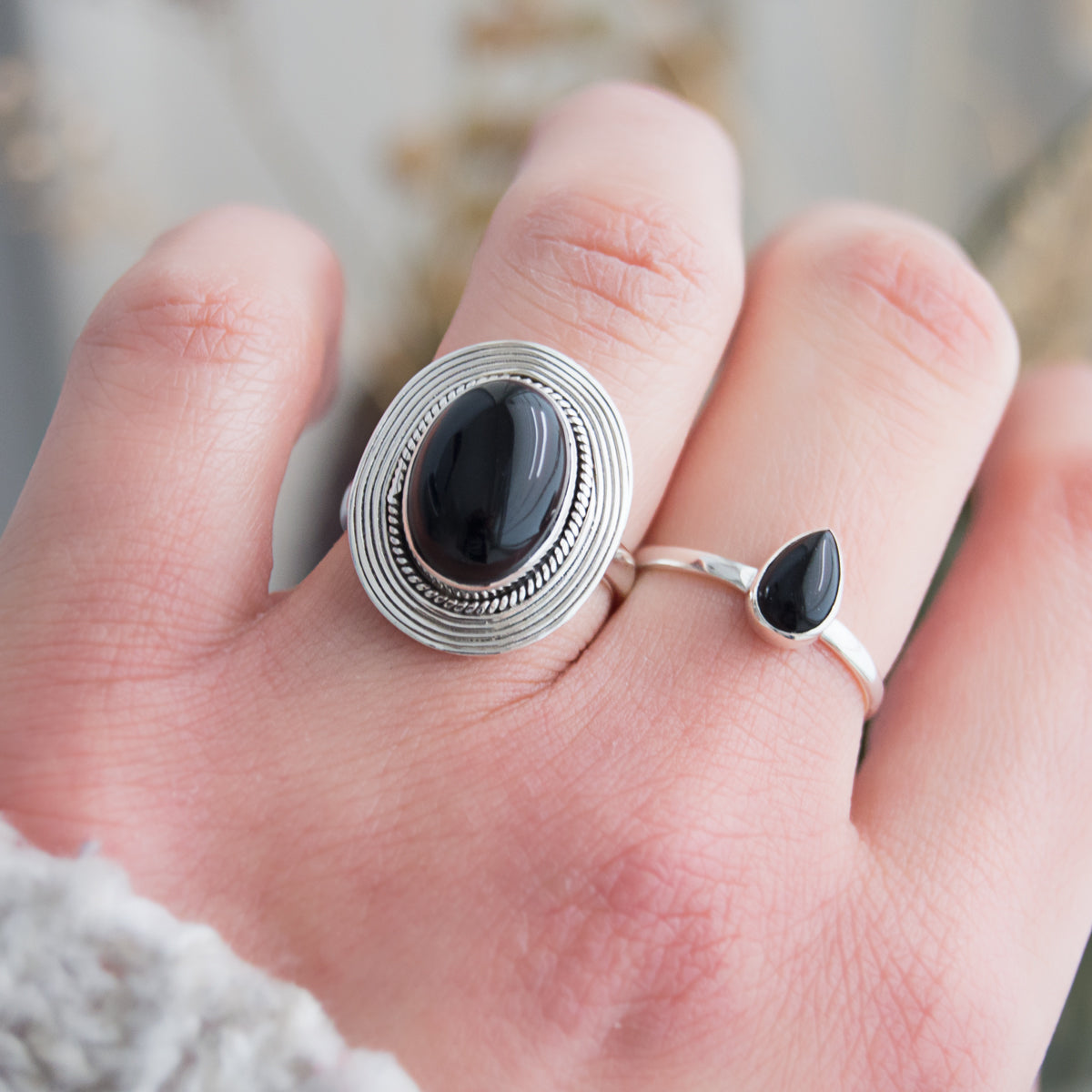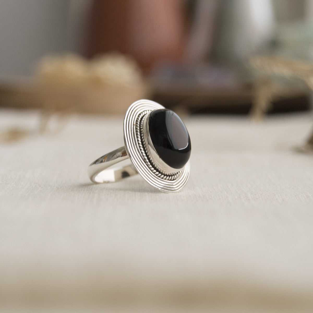 Dhyana | Ring 925 zilver met zwarte onyx edelsteen