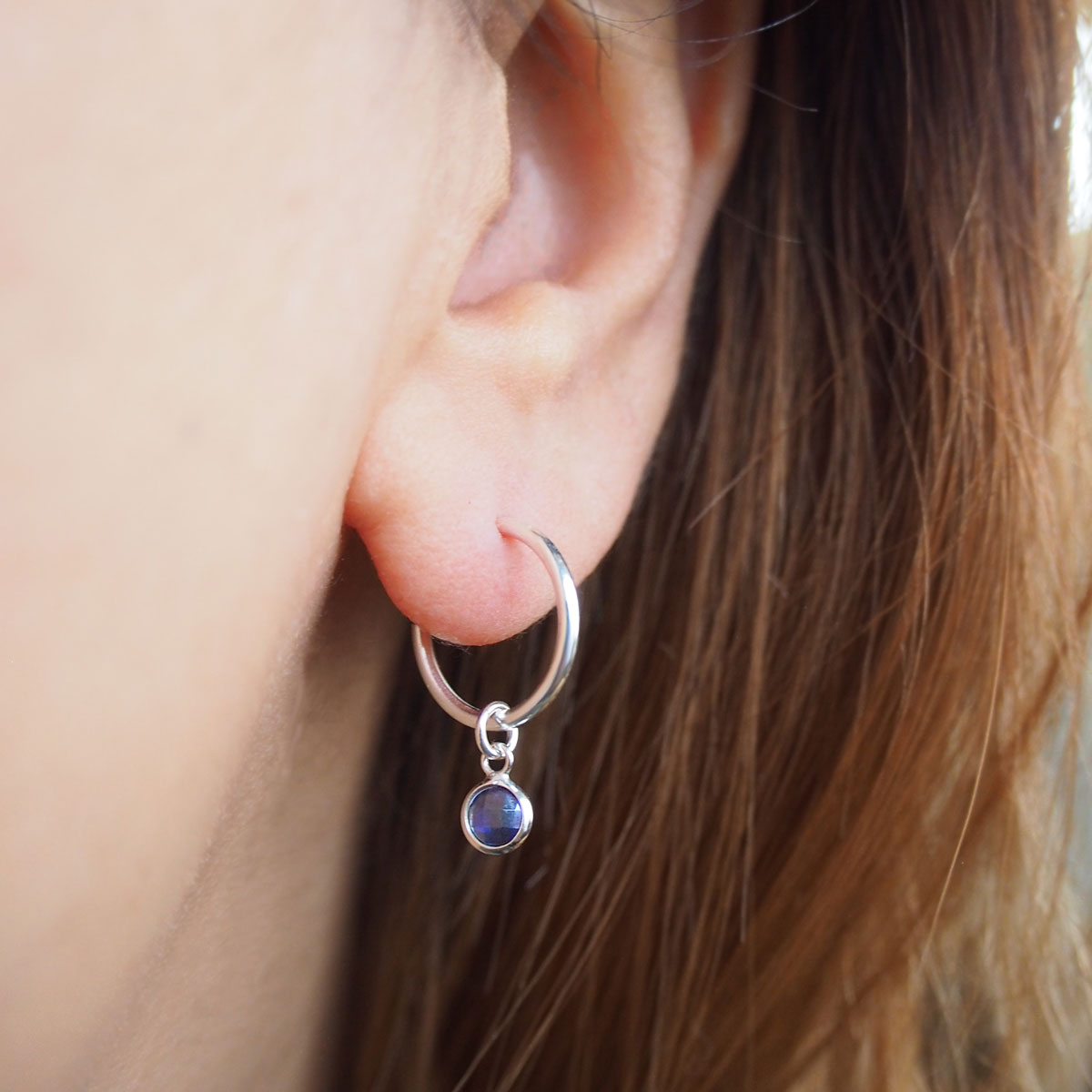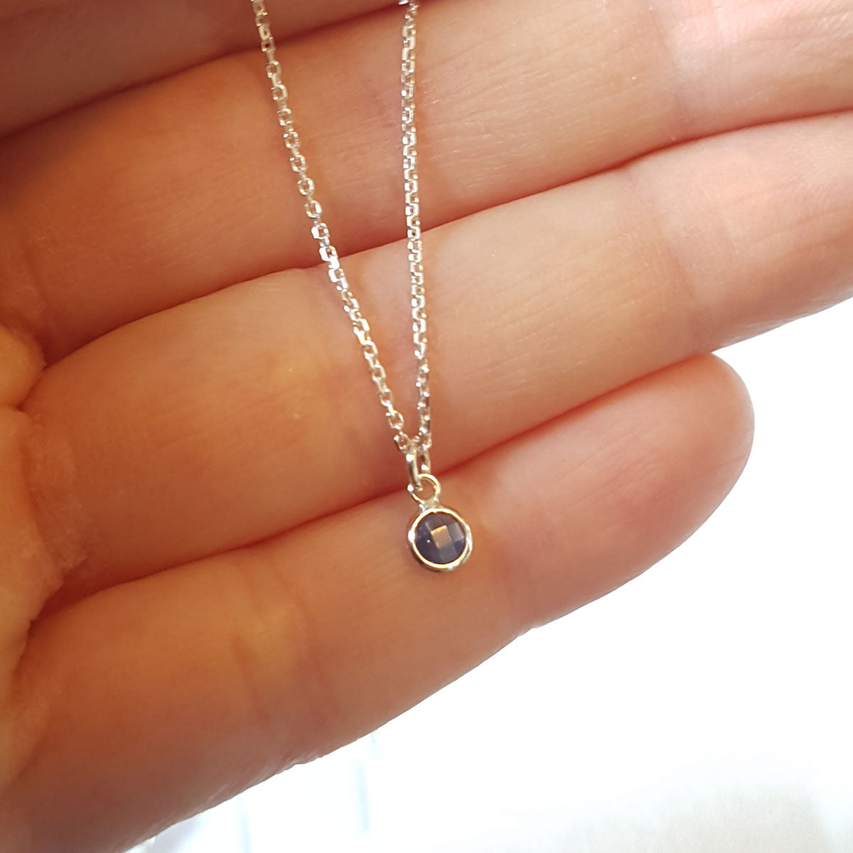 Een delicate sieradenset bestaande uit een ketting (50 cm) met hanger en bijpassende oorringen (14 mm). Zowel aan de ketting als aan de oorbellen hangen subtiele blauwe zirkonia steentjes, die met facetten zijn geslepen.