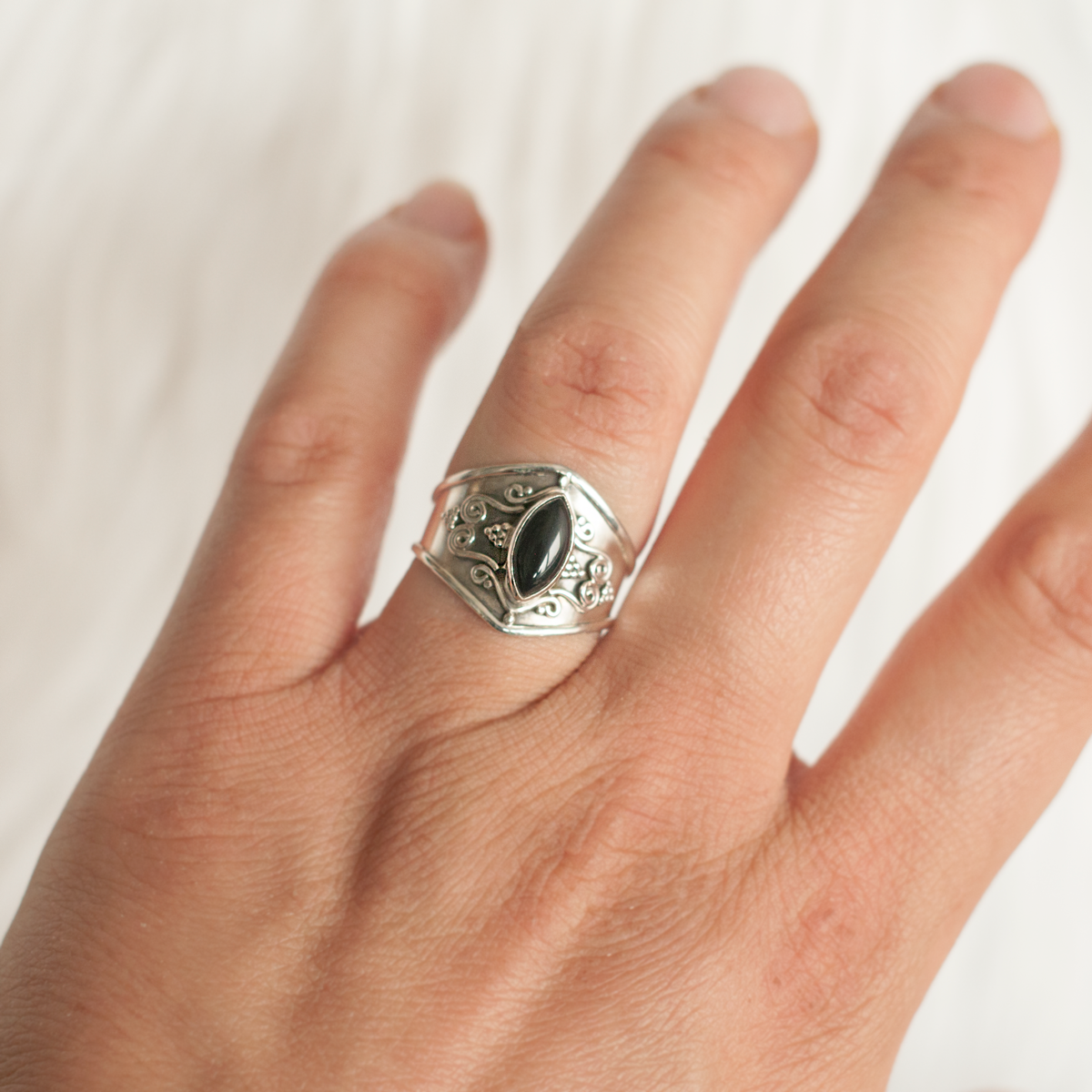 Hiral | Ring 925 zilver met edelsteen onyx (zwart)