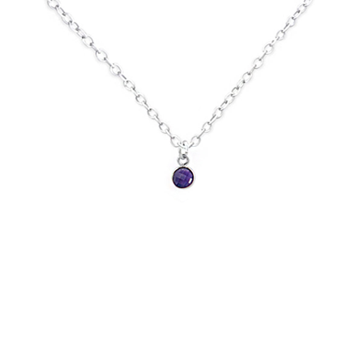 Een minimalistische ketting van 925 sterling zilver met een kleine, facetgeslepen amethist hanger. Perfect voor wie op zoek is naar een subtiele blikvanger.