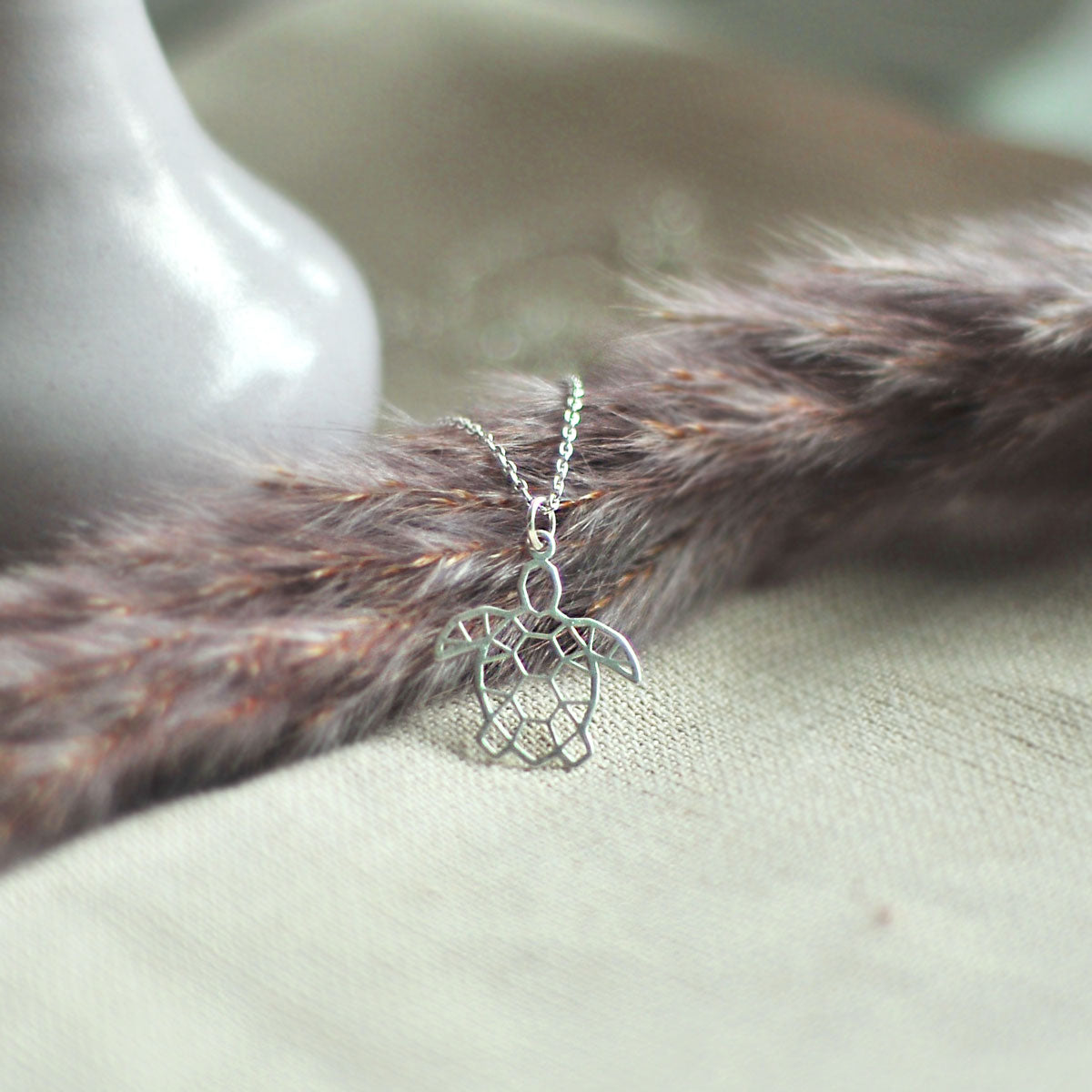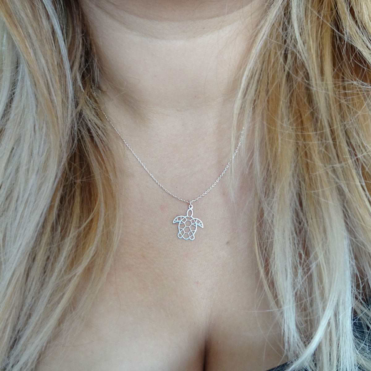 Ketting met prachtig opengewerkt hanger in de vorm van een schildpad. Gemaakt van 925 sterling zilver.